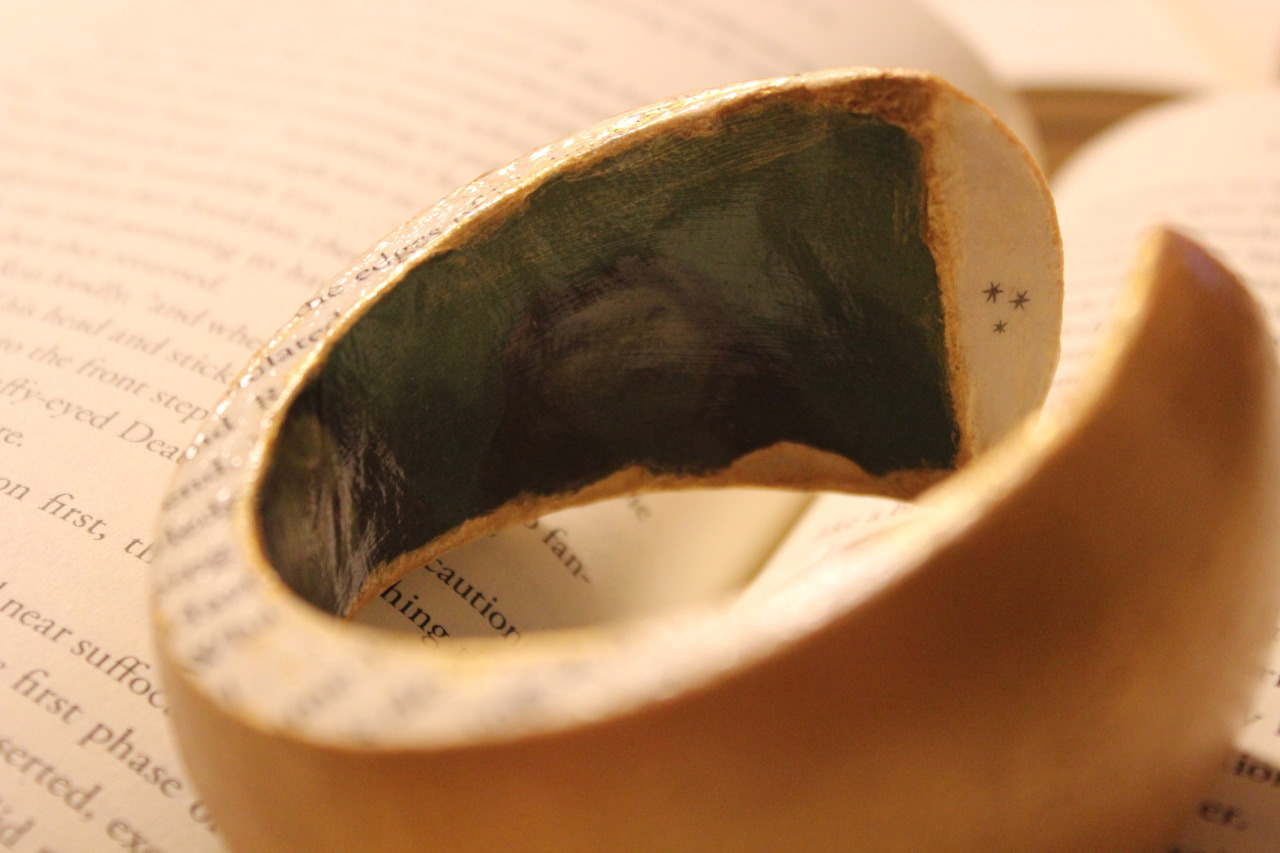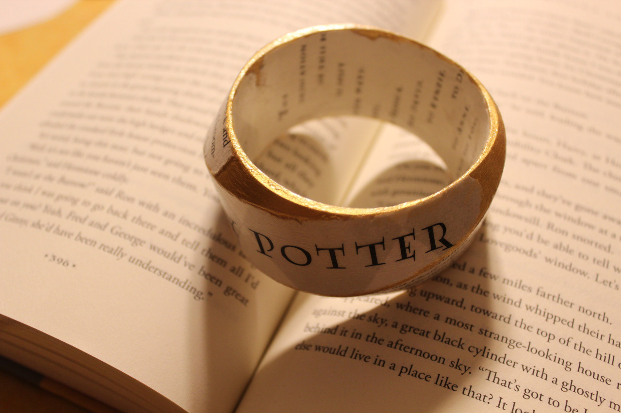Bracelets made from Harry Potter book covers and pages. Photography also by my.